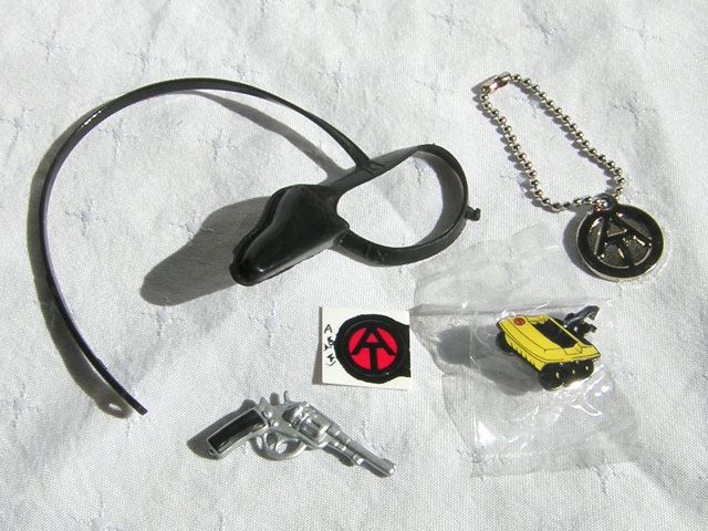 The Adventurer comes with the standard black shoulder holster, repro pistol, dog-tag, as well as an extra AT pin and ATV cloisonne pin.