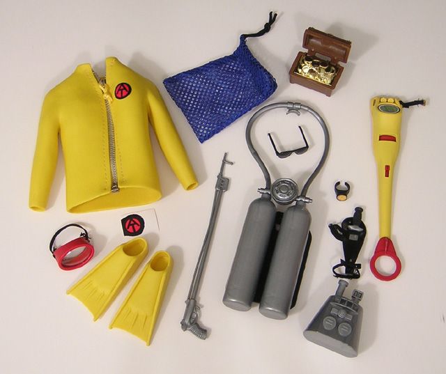 The treasure chest is a new accessory. I believe I've seen one similar to it before in an Ultracorps set. Also, the blue net bag I seem to recall from a Get Real Girls scuba diving set.