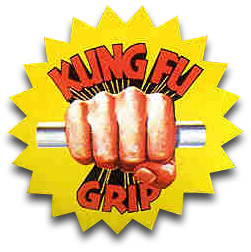 In December, 2006, Hot Topic, a store which specializes in pop-culture items, has done a fine reproduction of the Kung Fu Grip Land Adventurer. Here he is, standing next to his coffin box adorned with the KFG logo.