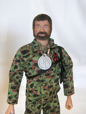 The uniform is a pretty accurate camo reproduction. And it includes the lovely AT logo. The boots are the shorter black boots, which may be inaccurate, historically, as I'm pretty sure the Land Adventurer came with the taller black boots.