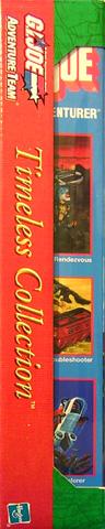 The back of the box has a gorgeous depiction of six classic Adventure Team paintings from vintage packaging: Black Widow Rendezvous, Fate of the Troubleshooter, White Tiger Hunt, Underwater Explorer, Drag Bike and Jaws of Death. It's a beautiful tribute to the vintage AT era.