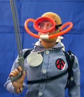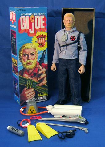 The mystery here is why the Air Adventurer (the blonde, bearded AT Joe) is wearing the Sea Adventurer's clothing and is obviously involved with a sea adventure. It is most likely due to the fact that the GI Joe Collectors' Club Exclusive figure for this year is the Sea Adventurer done right, so flocking this guy in red would have stepped on the toes of the club.