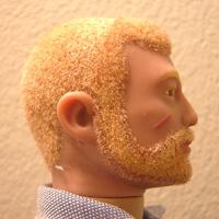 Boil a kettle. While the steam is pouring from the spout, hold Joe's head directly into the steam. Not too close, but close enough to get the heat and water on his head. His face should look like it's sweating profusely. Hold it there for a while, removing it from time to time (so as not to fully melt the glue holding the hair in place.)