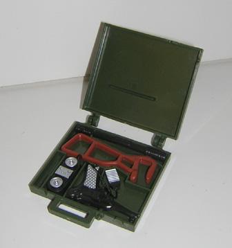 The showpiece in this set was an item I loved as a kid when my cousin gave me his Secret Agent set. It is a small brief-case that contains a small reel-to-reel tape recording device, a Luger with butt-stock and long barrel which can be assembled to be a sniper rifle.