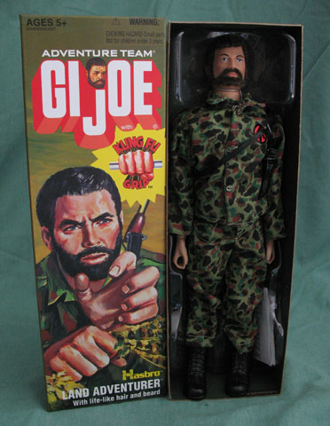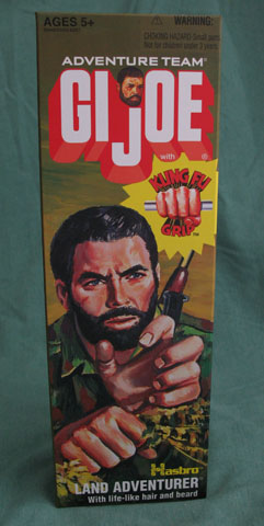 In August, 2007, WalMart introduced five reproductions of the original Kung Fu Grip Adventure Team members. This is the Land Adventurer. Here we see the old-style box, not seen on store shelves since the 1970s.
