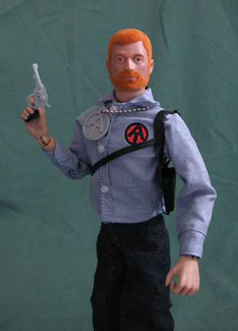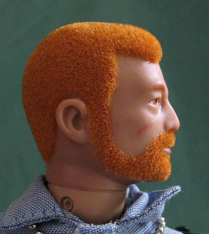The hair flocking is good on this one but the color is bizarre. I mean this is a day-glo version of red hair that would make Carrrot Top envious. It certainly does not in any way resemble the original Sea Adventurer's hair tone. Weirdly, another pseudo-Sea Adventurer made by Hasbro (the Eight Ropes of Danger TC Joe) has freakishly wrong red hair as well. I have no idea why Hasbro can't get the color of the Sea Adventurer's hair right. The GI Joe Collectors' Club does a good job getting the hair color right on their Sea Adventurer.