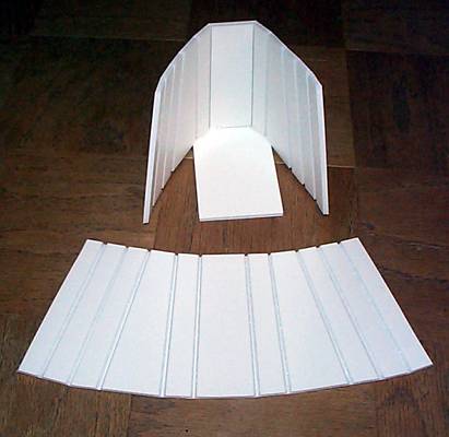 the thickness of the foam. Then I cut a V-Shaped channel down the lines by cutting on each side of the original cut. Then I gently pulled out the excess, leaving the V-grooves, and a score line. |