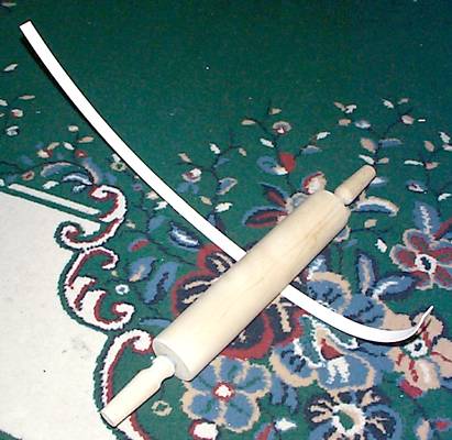 it. This is done without creasing by using a rolling pin on a carpet. Gently at first, until you are able to roll the strip up around the rolling pin. |
