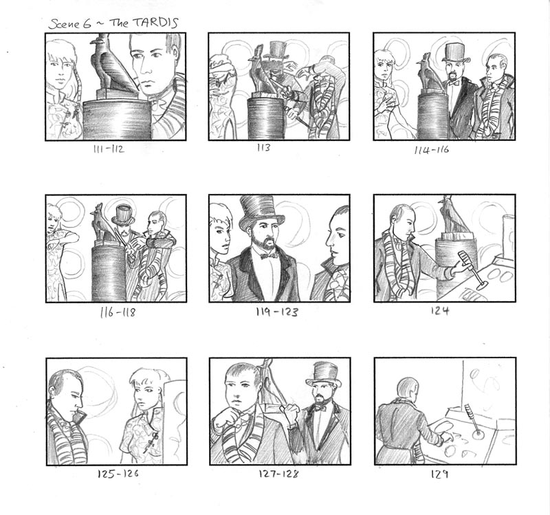 This story was rather complicated, so I had to do storyboards that closely matched the script. This, I tried to follow as closely as possible. Again, though, reality often has a serious effect on how the actual shots are laid out and filmed.