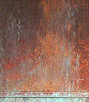 So I went ahead and began construction. I painted four flats black, first, then brown over the black, then I used a natural sponge to dab aquamarine on it. Then I dry-brushed it in streaks to give the impression that the patina (copper rust) ran. Then to accentuate that I used some metallic colors (silver, gold, copper) to dab on metallic areas.