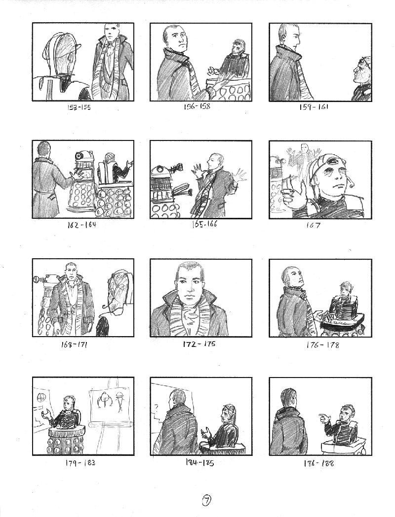 As usual, I created a storyboard for this story. It was hard to block out various corridor angles without a good storyboard to follow. Since I had only a few set walls I had to create all manner of corridor with just those few walls. So I had to make sure my storyboard reflected the corridors accurately. It would be bad to have the heroes taking a left but the next shot show them taking a right.