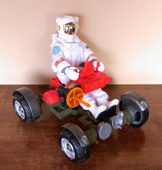 In 2000 I saw the Action Man Lunar Rover, and wanted one. Designed to loosely mimic the Lunar Rovers used by the Apollo Astronauts, this vehicle was given the Action Man treatment, including detailed piping on most surfaces. I wanted one, but the problem was that it was mostly available in the UK. To get one, I would have had to have a source in the UK or Australia, which would mean getting it at discount and having it shipped, to make it worthwhile. The Action Man vehicle also included space suit, helmet, breathing unit, boots and gloves.