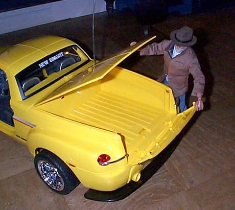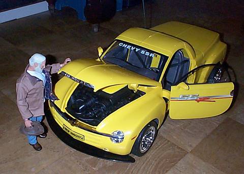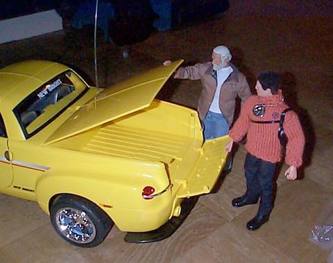 The Commander takes a look at the new arrival - a new suped-up Chevy SSR - which will become the Adventure Team's new Command Car. |