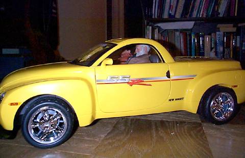 So the next day I checked online and found a Sam's Club near me. I called them and asked a very nice, very helpful young lady named Denise if they had the New Bright Chevy SSR. She said she'd check. About 5 minutes of being on hold, she came back and said "Yes, we have one left." "Really?" I asked with bated breath. "Is it a big one, about 3 feet long?" "Yeah, it's huge." "What color?" "Yellow."