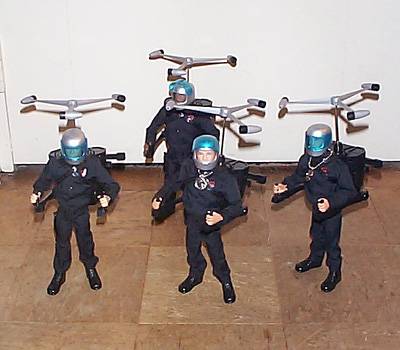 Here, a squadron of Adventure Team stealth pilots prepares for lift-off. |