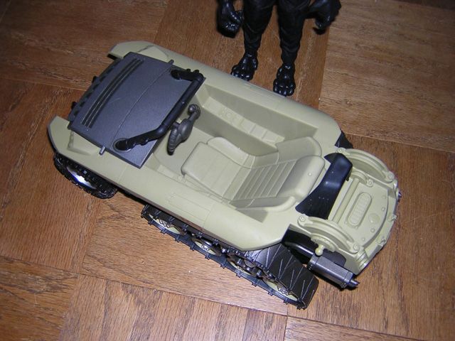 The rear shows off the twin exhaust and the track system. The two ball-joints are what the guns mount to. I can imagine they could be used to mount other gear.