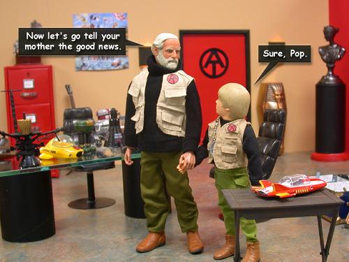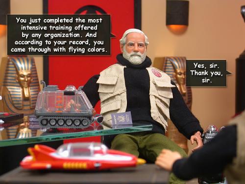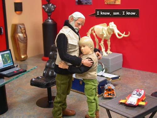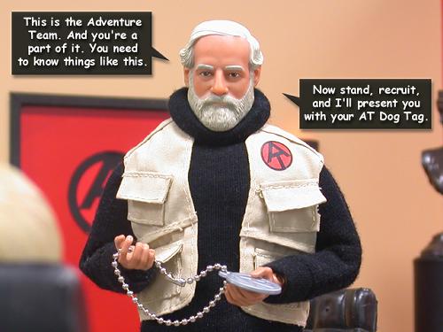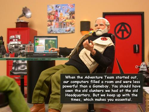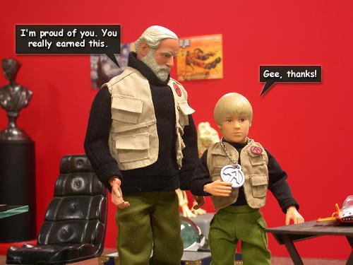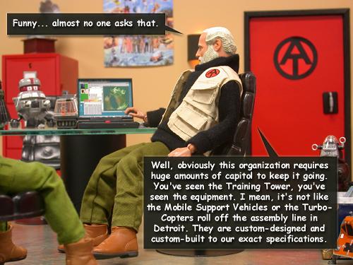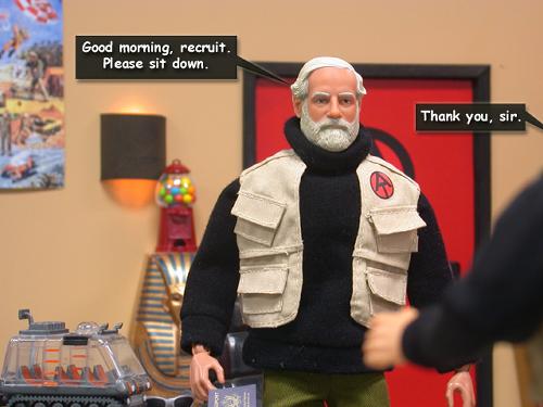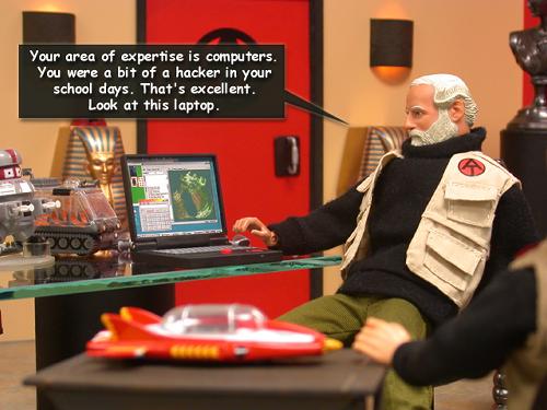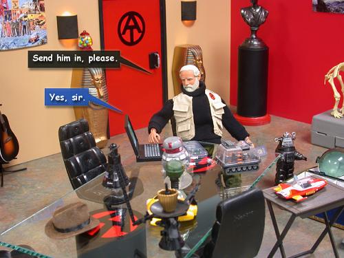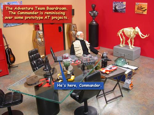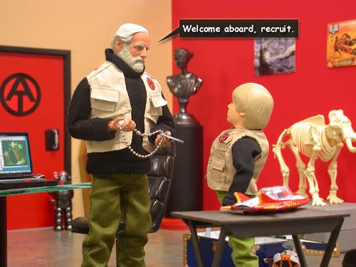 Months ago, when I storyboarded the Sasquatch story, I figured that since I was going to have an elaborate boardroom setup, that I would use the opportunity to introduce my new AT recruit to the world. The head of Anakin Skywalker, attached to a body of Action Jackson, this kid is a great hacker, and will prove useful in later Adventure Team adventures.