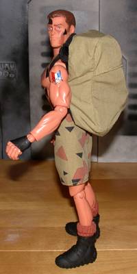 The figure comes completely decked out in camo. Here, a SA Tactical Advisor wears the jacket only. The figure comes with a backpack of the same material, and a nice bow carrying case of the same material. The biggest problem with the figure is the fact that everything is sealed with big white velcro. Yuck!