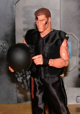 Apart from the head sculpt, the showpiece of this figure is the fantastic high-tech communication device on the wrist. This clips onto the wrist, and the cover flips up to reveal a keyboard. Wow! This is just perfect! |