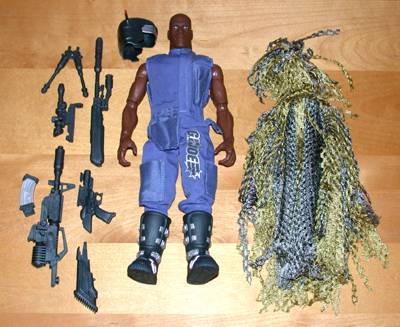 The "Hawk" head was one included in that set, which was originally introduced during the "Adventures Of GI Joe" series a couple of years earlier. But they decided to flock one of the most-used heads, the "recruit" head, for a surprisingly good look. I say surprisingly because until then, I was getting pretty tired of that head-sculpt. It seemed to be a catch-all, overused in every set Hasbro released.