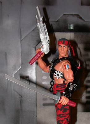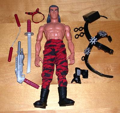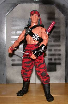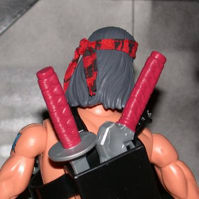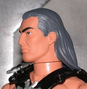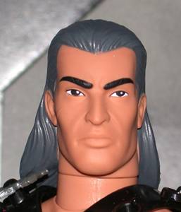 Nunchuk is one of the $10.99 RAH GI Joe figures. He has one of the most unique head sculpts I've seen in the GI Joe line. He uses molded long hair, which I have never seen pulled off so successfully. Even with it, the head's range of movement is not minimized in any significant way, and it looks very good.