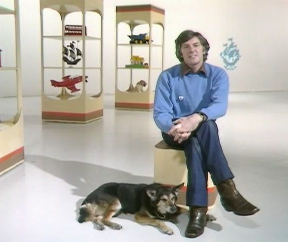 Note in the stacks behind the host is a red jet. It is clearly a red version of Irwin Toys' Jet Fighter for GI Joe (and Action Man, I guess) from the 1970s.