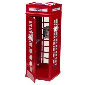 Even now, when you go to an incorrect page on my Huxter.org web-site, you get a picture of a red phone kiosk that's actually about 8 inches tall, not nearly tall enough for my purposes, but it's a coin bank, and quite nice. That one is pictured here:
