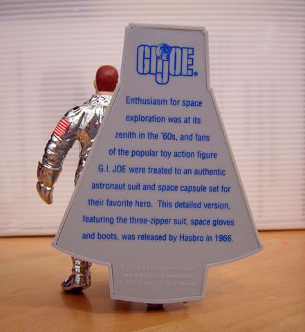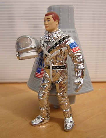 Enthusiasm for space exploration was at its zenith in the '60s, and fans of the popular toy action figure G.I. JOE were treated to an authentic astronaut suit and space capsule set for their favorite hero. This detailed version, featuring the three-zipper suit, space gloves and boots, was released by Hasbro in 1966