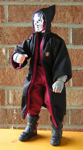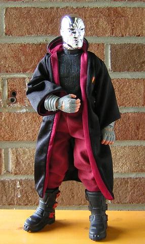 Hasbro's new Destro figure (from the GI Joe Real American Hero line) is actually a pretty nice figure. He has one of those stupid molded-on sweaters but it's molded in black and therefore kind of works. The hands have gray fingerless gloves and he has wrist bracers. I bought the recent 1:6 scale Harry Potter (from the Prisoner of Azkaban film) and put his robe on Destro.