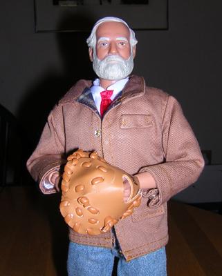 This came from a kitchen shop called "Le Gourmet Chef" and cost around $12.00. The purpose for this apron and chef's hat is actually to dress up a bottle of champagn or wine. But it fits Joe almost perfectly. I thought I'd have to adjust the hat, but nope. Fits a flocked original Joe perfectly. The apron is a bit too wide and wraps too much in the back, but that can easily be hidden. Or adjusted with sewing abilities.