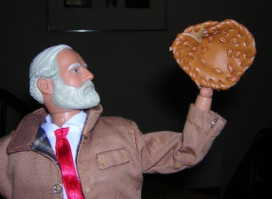 Sword letter-openers have been popular among us Joe collectors for some time now. The problem is finding them, and at a good price. I found one once, and a fellow collector sent me a couple others. The metal hilts of the ones I had were shiny gold or copper-color. This one has a rich bronze look to it that I quite like. The guard looks like two inverted dragon wings, and the sword seems to come from the dragon's gaping mouth.