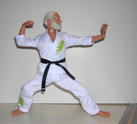 Gabi, the Get Real Girl, comes with this Karate Gi. Like most Get Real Girls outfits, it's top notch quality-wise, made well of good fabric, and fits other 12" figures well. This gi fits all 12" GI Joes I've put it on. The green "dragon" motif is nice. I'm not sure if it could be removed, but I like it as is, so I won't try.