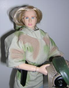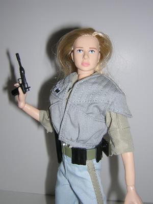 Target's Exclusive Empire Strikes Back Speeder this year is driven by Leia. She is made from the GI Jane body, a bit paler than usual. The neck is also slightly unusual. It has the same base as Jane, but the neckpost is made to fit Barbie-style heads.