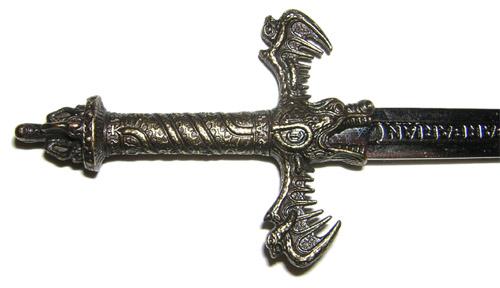 This was another find at the Brookline News & Gifts shop. In an old wooden box, about 15 or these swords were in their folded card packages. The back of the packet shows a number of swords including Robin Hood's and Excalibur. The shop had at least one of each except for Excalibur, which was sold out. For $7.50 I couldn't get more than one, but I got the freakiest one - the Barbarian Sword.