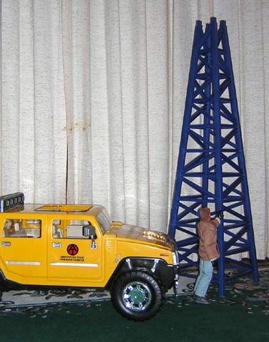 This is a three-foot-tall blue infrastructured tower that came from a "Tech Dude" Downhill racetrack set. As you can see, it would make a good customized Training Tower, or an excellent power line tower, or radar tower. It could be fitted with a radar dish, power lines, whatever you see that works.