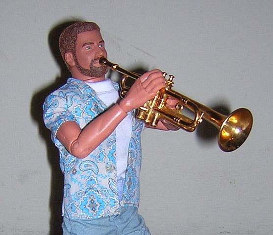I had made the two above purchases (the Spine and the Sword) at the Brookline News & Gifts shop, and left. On my way out, my eye caught on to a very cool 1:6 art-deco radio (which was a housing for a small clock) and thought I'd love to have that, but then my eye drifted a little to the right, and saw this, my coveted trumpet. So I ran back in, and asked the price. He said it was $15.00, and he had more instruments. I looked at them all. The saxophone was by far the most detailed, but hey, I didn't play the Saxophone, I played the Trumpet, so I wanted Joe to have one. Perhaps I'll get the sax later, on another trip.