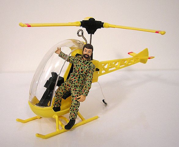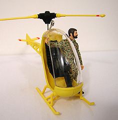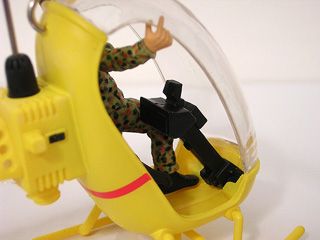 How cool is this? This is this year's Hallmark GI Joe ornament - an accurate 1:36 scale reproduction of the GI Joe Adventure Team helicopter, with a 1:36-scale GI Joe in the cockpit. So while it's a mystery why the Joe is not an Air Adventurer (blonde with orange jumpsuit) it's still a great item.