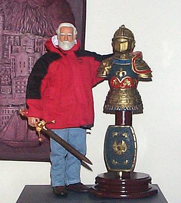 Here, the Commander poses next to the armor bust, sword in hand. The sword fits into a hole in the shield.