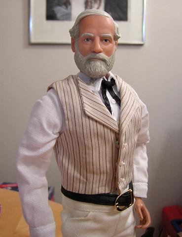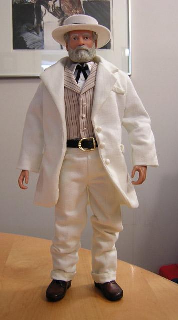 This is General Lee wearing his Rhett Butler outfit. Look at this thing! The outfit is rich, luxurient, and has a hat that fits General Lee to a T. Which is lucky, as it's meant for a Barbie Rhett Butler, and usually that means it's not going to fit the General.