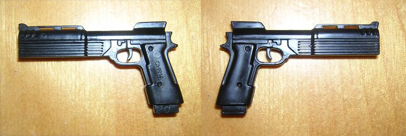 Thanks to a heads-up on one of the GI Joe groups I read, I found at my local KB Toys a set of carded military accessories. Of the three sets I bought two. Mostly I got them because there are two very cool pistols. (The third's pistol didn't interst me as much.) The two pistols are pictured here: