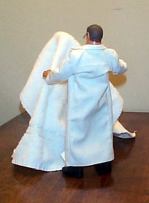 I removed the handlebar assembly, and used epoxy cement to glue a painted shaft extension to raise the handlebars high enough so GI Joe could use the platform. The shaft is from the 21st Century Kubelwagen gun mount that I never used.
