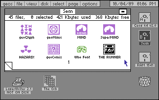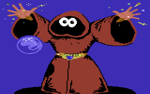 This wasn't GEOS-related, but somewhere around 1991 or 1992 I won the LoadStar Graphics Contest with this simple cartoon image of a little wizard I was working on. It won, not because it was a spectacular image, but because I used a technique not well-known at the time. Have a close look at the fingers. I used anti-aliasing to smooth out the hands, and that's the reason I won. I was able to do it because the pink and brown colors on the 64 were close enough to each other to work. I didn't use it on the eyes or the robe edges because there were only 16 colors to choose from, and there were not always good colors that would help in the anti-aliasing.