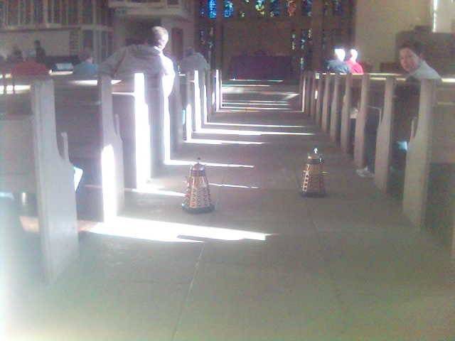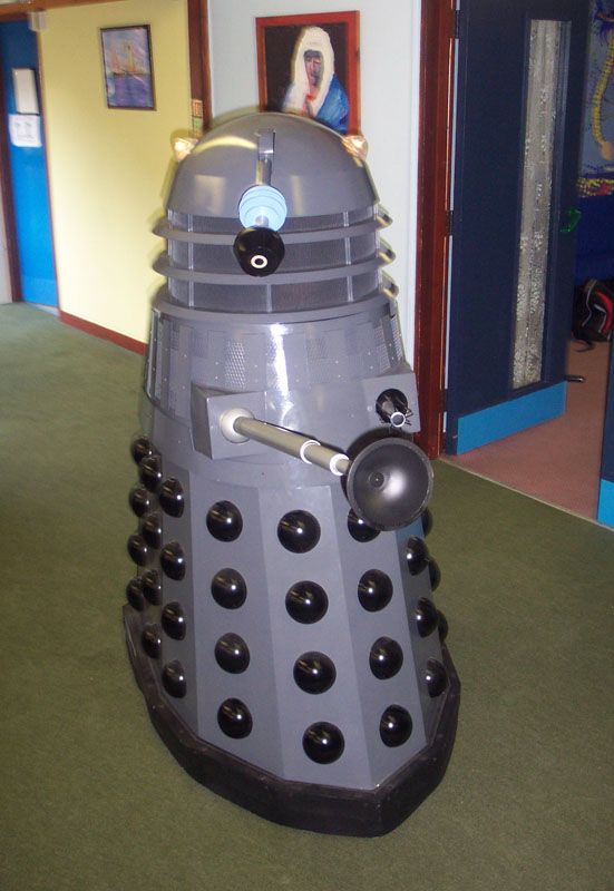 A friend I've made on the internet creates a great audio drama called "SC5". They've done three episodes so far, and I've quite enjoyed them. Pete Booker, the sound engineer, had a Dalek made for him. Here's a picture of it.
