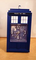 Issue #3 has a TARDIS alarm clock on it. I expected some cheep crap, but wow. It's about 5-6 inches tall, is an analog clock with alarm, running off one AA battery.