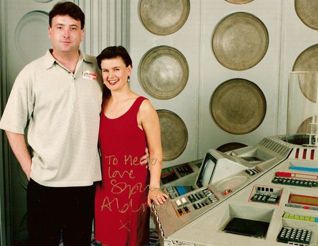 It has to be emarrassing for the man who played the fifth Doctor. His wife, Sandra Dickinson, famous for playing Trillian on the TV version of "The Hitchhikers' Guide to the Galaxy", and most recently a version of Trillian in the new BBC radio plays based on the same.