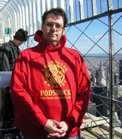 And again, here's me with my Podshock shirt: Mine's a quite fashionable red hoody, but it's from the same source.