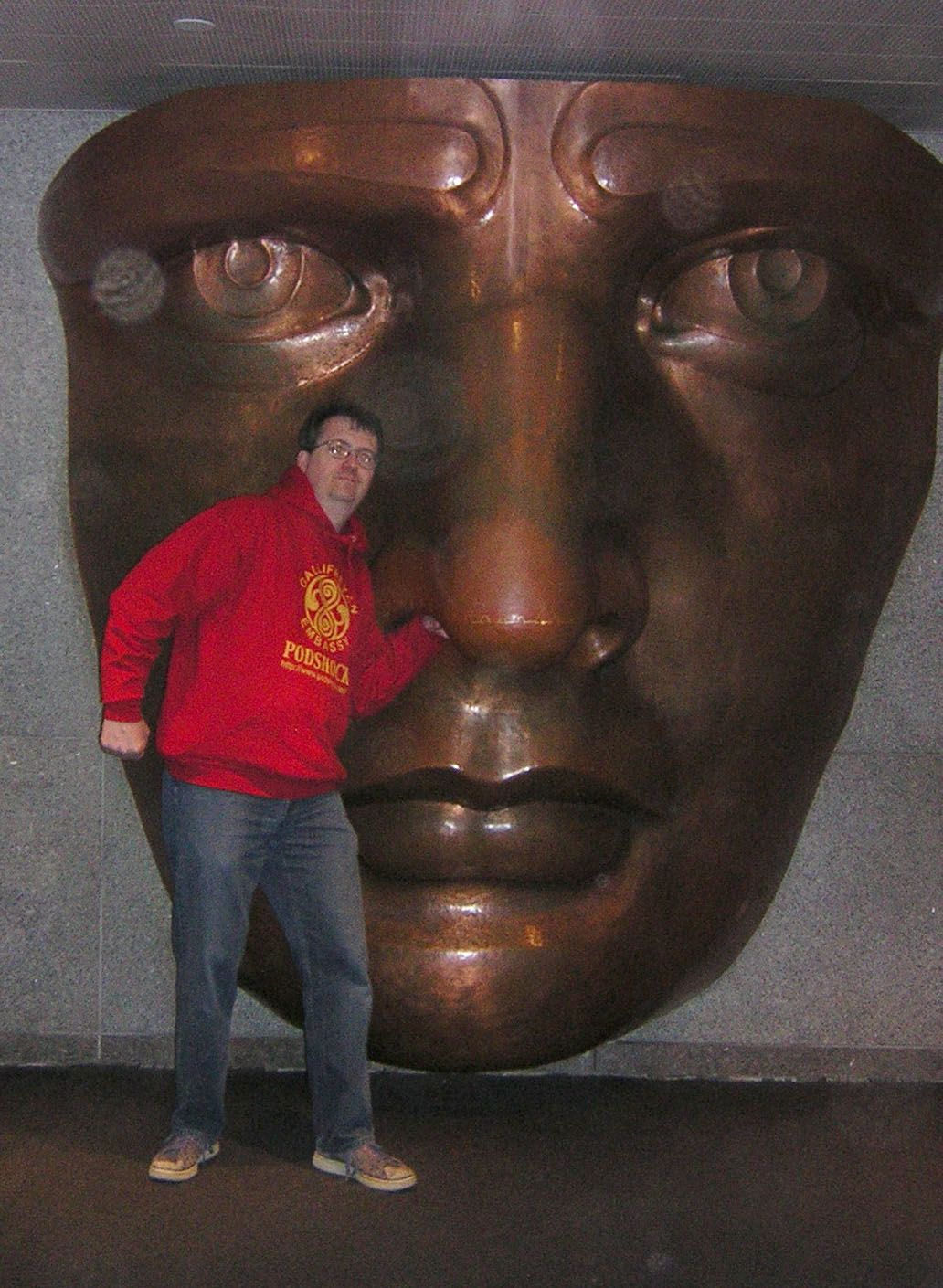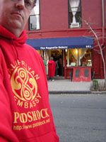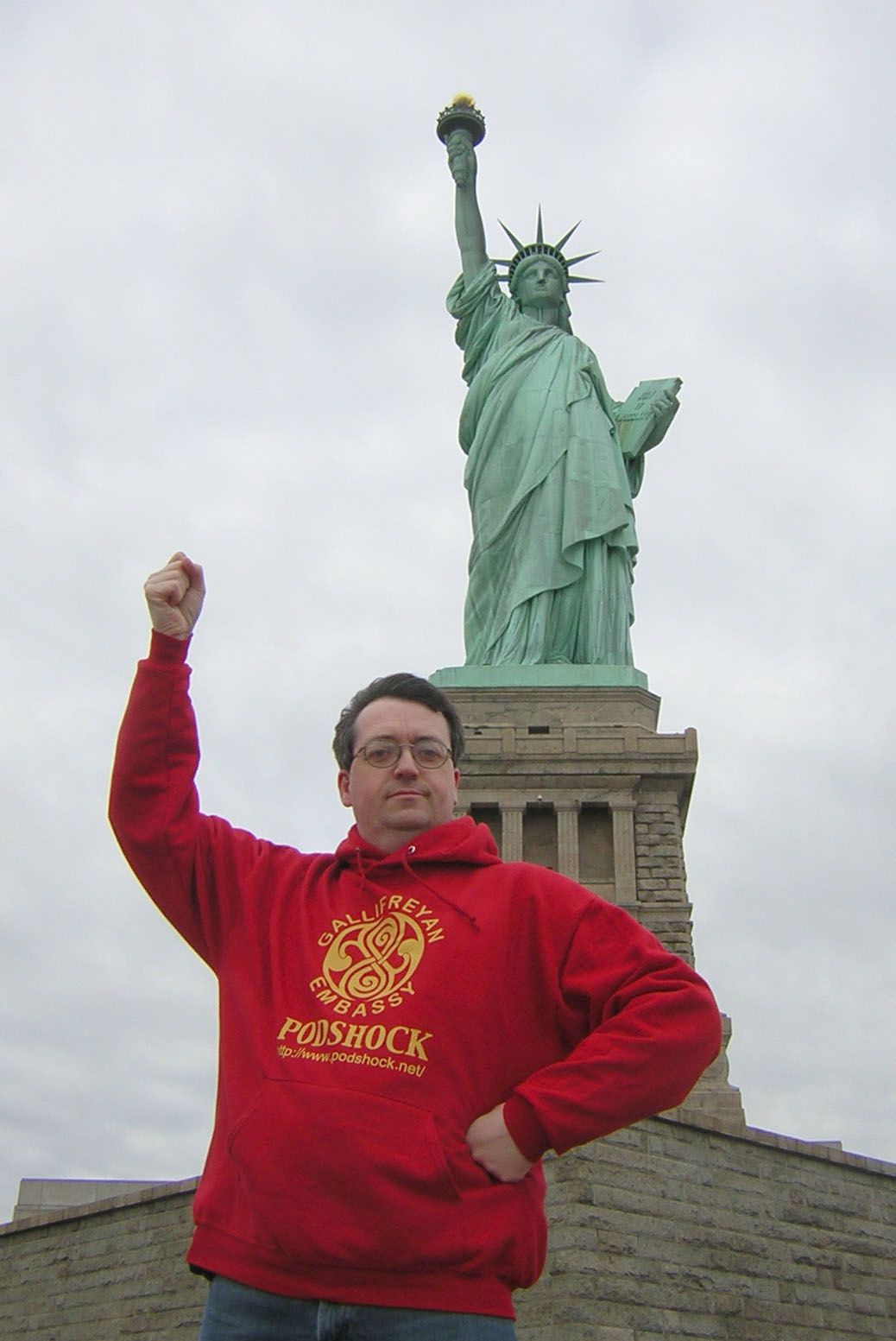 So here is me in New York City wearing my Podshock shirt everywhere. It was mighty cold on some of the days, so I was wearing a coat over the shirt, but I took it off for photographic purposes.