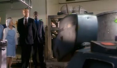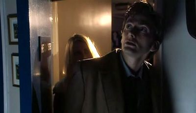 Here we get Jefferson saying exactly the same line Rose said in "Dalek" when she's trying to run out of the tunnels before the Doctor seals the Dalek in on one side. Jefferson says, "Sorry, I was a bit slow."