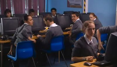These are the super-fast modern computers that are being brought into the school in the opening scenes. FAST ACCESS. 386 16Mhz computers with 40 Mb and 3.5" floppies, and 2Mb of RAM.