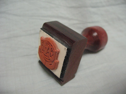 So I ordered a rubber stamp online and experimented with various paints. I found a good paint that would stick to acrylic and not rub off easily. But the rubber stamp doesn't make a clear imprint. Also, I misprinted the stamp. So I ordered a second one, with the logo fixed, and got busy.